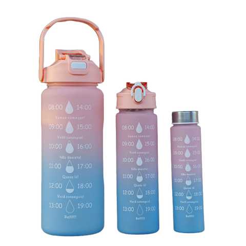 2025 Nueva taza de agua barata SY, taza de agua de plástico deportiva con degradado, juego de tres piezas, botella de agua portátil de gran capacidad para exteriores